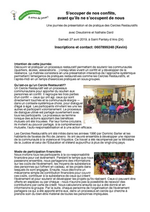 Une journée de présentation et de pratique des Cercles Restauratifs[modifier]