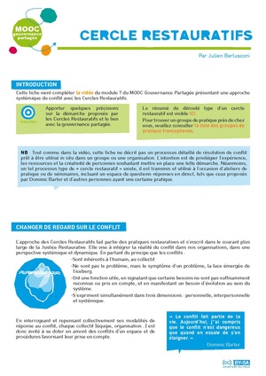 En 2017, l'Université du Nous (UdN) et Mouvement Colibri, proposent un w:MOOC sur la Gouvernance Partagée, et les Cercles Restauratifs y sont présentés au cours du module 7 :